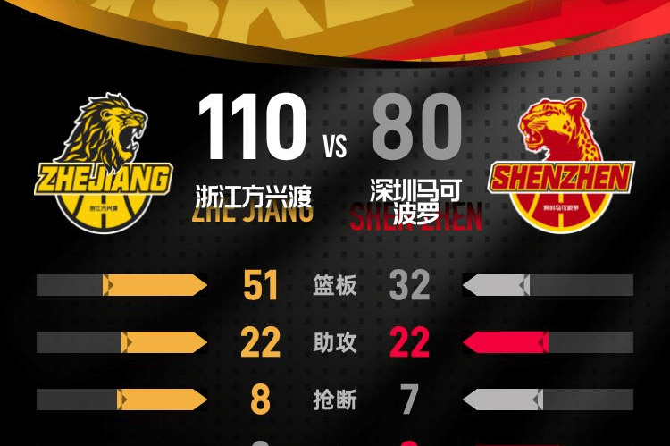 第四节伊始,浙江方兴渡再次发力,通过一波进攻将领先优势扩大至31分。深圳马可波罗在节中发起反击,将分差缩小至22分。然而,随着比赛的深入,浙江方兴渡稳扎稳打,继续扩大领先优势。值得一提的是,本节中,深圳马可波罗的特奎维恩·史密斯在三分线外表现出色,独得12分。最终,浙江方兴渡以110-80赢得比赛。