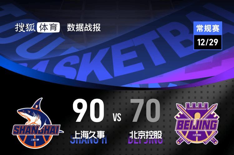 【搜狐体育战报】北京时间12月29日,目前排名积分榜第11名的北控男篮主场迎战第5名上海男篮。上海男篮开局先声夺人打出14-2的开局,凭借多点开花的攻势在上半场便取得20分优势,下半场北控男篮在廖三宁带领下尝试追分,但由于分差过大无力回天。最终上海男篮90-70大胜北控取得四连胜。