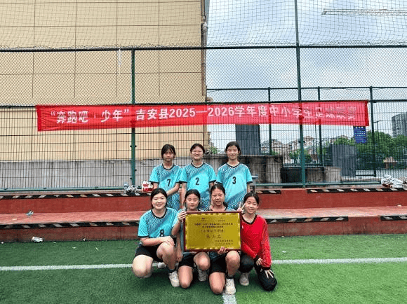 近日,2026年吉安县中小学生足球联赛(小学五人制)圆满落幕。浬田镇中心小学女子甲组足球队奋勇拼搏、过关斩将,凭借出色发挥斩获全县第三名,为校园足球运动增添了靓丽风采。